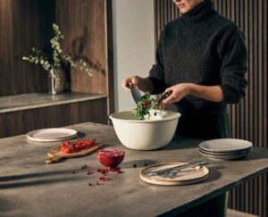 – Include patru discuri interschimbabile pentru diferite sarcini: centrifugă de salată, spiralizator, feliator și răzător